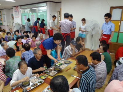 ºÀ»çȰµ¿ Âü°¡ÀÚµéÀº °æ·Î½Ä´çÀ» ãÀº ¾î¸£½Å 130¿©¸í¿¡°Ô ¹è½ÄÇÏ¸ç ¾î¸£½ÅµéÀÇ °Ç°°ú ¾ÈºÎ¸¦ ¹¯°í ¾î·Á¿ò µîÀ» ûÃëÇϸç ÈÆÈÆÇÑ Á¤À» ³ª´³´Ù.