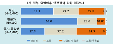 Á¶»ç°á°ú ¿ì¸®³ª¶ó ±¹¹Î Áß 38.1%´Â »õÁ¤ºÎ Ãâ¹ü ÀÌÈÄ ¡®¾ÈÀüÁ¤Ã¥ÀÌ °ÈµÇ¾ú´Ù¡¯°í »ý°¢Çϰí ÀÖ¾úÀ¸¸ç, 29.2%´Â º¸ÅëÀÌ´Ù, 29.8%´Â °ÈµÇÁö ¾Ê¾Ò´Ù°í »ý°¢Çϰí ÀÖ´Â °ÍÀ¸·Î ³ªÅ¸³µ´Ù.