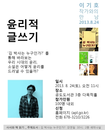 4ȸ°ÀÎ À̹ø °¿¬È¸´Â ¿À´Â 8¿ù 24ÀÏ(Åä) ¿ÀÀü 11½Ã,¡º±è ¹Ú»ç´Â ´©±¸Àΰ¡¡»¡º»ç°ú´Â ÀßÇØ¿ä¡»ÀÇ ÀúÀÚ À̱âÈ£¸¦ ÃÊÃ»ÇØ 'À±¸®Àû ±Û¾²±â'¿¡ °üÇØ °ÀÇÇÒ ¿¹Á¤ÀÌ´Ù.