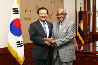 °Ã¢Èñ ±¹È¸ÀÇÀåÀº 26ÀÏ ¿ÀÀü ÀÇÀåÁý¹«½Ç¿¡¼ Á¤ºÎ°¡ ¸¶·ÃÇÑ ¹ÌÀÇ¿ø±³·ù»ç¾÷¿¡ µû¶ó ¹æÇÑ ÁßÀÎ Âû½º ·©±Û(Charles RANGEL) ¹Ì±¹ ÇÏ¿øÀÇ¿ø(¹ÎÁÖ´ç)À» Á¢°ßÇÏ°í ¾ç±¹ ÀÇȸ °£ Çù·Â ÁõÁø ¹æ¾È µî °øµ¿ °ü½É»ç¿¡ ´ëÇØ ÀǰßÀ» ³ª´³´Ù.