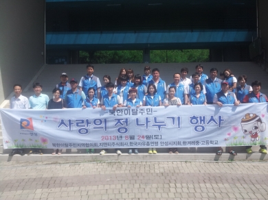 À̳¯ ¡®»ç¶ûÀÇ Á¤ ³ª´©±â¡¯ Çà»ç¿¡´Â ¾È¼º½Ã ºÏÇÑÀÌÅ»ÁֹΠÁö¿ªÇùÀÇȸ, Çѱ¹ÀÚÀ¯ÃÑ¿¬¸Í ¾È¼º½ÃÁöºÎ, Áö¾ØÆ¼ÁÖ½Äȸ»ç ºÀ»ç´Ü ȸ¿øÀÌ ÇѰܷ¹ Áß․°íµîÇлý°ú ÇÔ²² Á¡½É 200¿©¸í ºÐÀ» ¸¸µé¾î Çлýµé°ú ÇÔ²² ½Ã½Ä ÇßÀ¸¸ç, ¿ÀÂù ÈÄ¿¡´Â Ä£±³½Ã°£À» ÅëÇØ ¼­·ÎÀÇ Á¤À» ´À³¢´Â ½Ã°£À» °¡Á³´Ù.