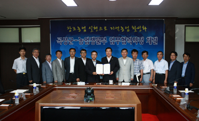 ³óÃÌÁøÈïû ³ó¾÷»ý¹°ºÎ¿Í °î¼º±ºÀº 27ÀÏ ¿ÀÀü 11½Ã °î¼º±ºÃ» ȸÀǽǿ¡¼ Áö¿ª³ó¾÷ Ȱ¼ºÈ µµ¸ð¸¦ À§ÇÑ °ïÃæ¡¤¹Ì»ý¹° ºÐ¾ß ¾÷¹«Çù¾àÀ» ü°áÇß´Ù.
