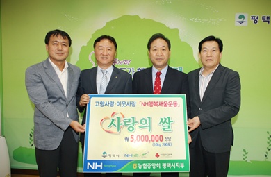 ³óÇùÁß¾Óȸ ÆòÅýÃÁöºÎ(ÁöºÎÀå ±ÇÁØÇÐ)´Â Áö³ 8¿ù 30ÀÏ ÆòÅýÃûÀ» ¹æ¹®ÇØ °ð ´Ù°¡¿Ã ¹Î¼Ó ÃÖ´ë ¸íÀýÀÎ Ãß¼®À» ¾ÕµÎ°í µµ¿òÀÌ ÇÊ¿äÇÑ ¾î·Á¿î ÀÌ¿ô¿¡°Ô ½á ´Þ¶ó¸ç »ç¶ûÀÇ ½Ò(10§¸ 200Æ÷, 500¸¸¿ø »ó´ç)À» ±âŹÇß´Ù.