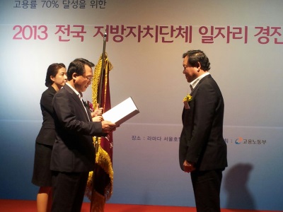 ±¤ÁÖ±¤¿ª½Ã(½ÃÀå °¿îÅÂ)°¡ °í¿ë³ëµ¿ºÎ ÁÖÃÖ·Î 4ÀÏ ¶ó¸¶´Ù¼¿ïÈ£ÅÚ¿¡¼ ¿¸° ¡®2013³â Àü±¹ Áö¹æÀÚÄ¡´Üü ÀÏÀÚ¸® °æÁø´ëȸ¡¯¿¡¼ ÃÖ°í»óÀÎ ´ëÅë·É»óÀ» ¼ö»óÇß´Ù.