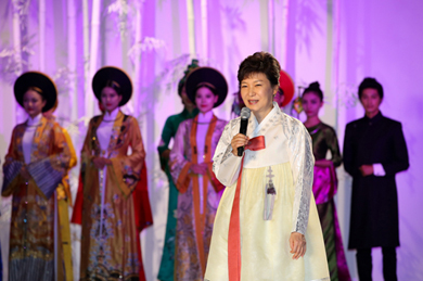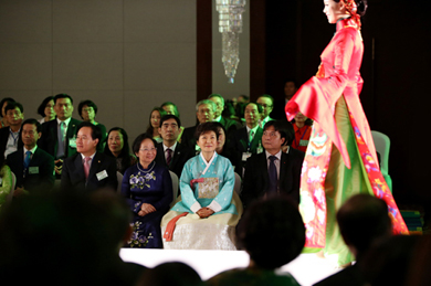 ÇÑÆí, ¹Ú±ÙÇý ´ëÅë·ÉÀº ÆÐ¼Ç¼î°¡ ³¡³­ µÚ ÇѺ¹À» ÀÔ°í ¹«´ë¿¡ ¿Ã¶ó Àλ縻À» ÇØ ´«±æÀ» ²ø¾ú´Ù. ¹Ú ´ëÅë·ÉÀº Æò¼Ò ¿ì¸® ÀüÅ빮ȭ¿Í ÇѺ¹¿¡ ´ëÇÑ ¾ÖÁ¤À» ÇÇ·ÂÇØ ¿Ô´Âµ¥, À̹ø ÆÐ¼Ç¼î¿¡ ÇѺ¹À» ÀÔ°í Âü°üÇÑ °Íµµ ±× ¿¬Àå¼±¿¡ ÀÖ´Â °ÍÀ¸·Î ¾Ë·ÁÁ³´Ù