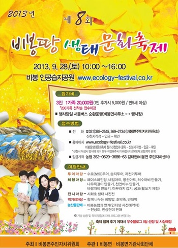 ÇÑÆí, À̹ø ÃàÁ¦ÀÇ Âü°¡½ÅûÀº 200°¡Á· ¼±Âø¼ø Á¢¼ö·Î ¸¶°¨µÇ¸ç, ÀÚ¼¼ÇÑ ¹®ÀǴ ȨÆäÀÌÁö (www.ecology-festival.co.kr) ¹× ºñºÀ¸é ÁÖ¹ÎÀÚÄ¡À§¿øÈ¸(031-369-2545)·Î ÇÏ¸é µÈ´Ù.