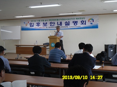 9¿ù 10ÀÏ È¼ºµ¿ºÎº¸°ÇÁö¼Ò 3Ãþ º¸°Ç±³À°½Ç¿¡¼ °³ÃÖÇÑ ¿¹ºñÈĺ¸ÀÚ µî·Ï¾È³» ¼³¸íȸ¿¡¼´Â ¿¹ºñÈĺ¸ÀÚ µî·Ï½Åû ¹æ¹ý ¹× ¼±°Å¿îµ¿¹æ¹ý, Á¤Ä¡ÀÚ±ÝÀÇ ¼öÀÔ¡¤ÁöÃâ ¹æ¹ý, ±âŸ ÀÔÈĺ¸ Áغñ¿¡ ÇÊ¿äÇÑ »çÇ׿¡ ´ëÇÑ ¾È³»°¡ ÀÌ·ç¾îÁ³À¸¸ç, ´Ù¼öÀÇ ÀÔÈĺ¸¿¹Á¤ÀÚ¿Í ¼±°Å»ç¹«¿¹Á¤ÀÚ µîÀÌ Âü¼®ÇÏ¿© À̹ø ¼±°Å¿¡ ´ëÇÑ °ü½ÉÀ» ´ëº¯Çß´Ù.