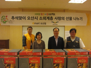 À̸¶Æ® ¿À»êÁ¡(Á¡Àå ÇǹüÈñ)¿¡¼­ Áö³­ 11ÀÏ Ãß¼®¸íÀýÀ» ¾ÕµÎ°í °ü³» ¾î·Á¿î ÀÌ¿ôÀ» À§ÇØ ½ºÆÔ ¼±¹°¼¼Æ® 30°³(100¸¸¿ø »ó´ç)¸¦ ¿À»ê½Ã(½ÃÀå °û»ó¿í)¿¡ ±âŹÇß´Ù.