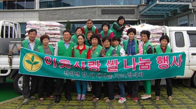 ÆòÅýà ÁøÀ§¸é »õ¸¶À»³²‧³àÁöµµÀÚ(ȸÀå ¼ÛÁ¾¹è, ¹Ú³¼ø)´Â Áö³ 11ÀÏ ¾î·Á¿î ÀÌ¿ô µ½±â¸¦ À§ÇÑ '»ç¶ûÀÇ ½Ò' 20kg 100Æ÷(5¹é¸¸¿ø »ó´ç)¸¦ Àü´ÞÇØ ÁÖÀ§¸¦ ÈÆÈÆÇÏ°Ô Çß´Ù.