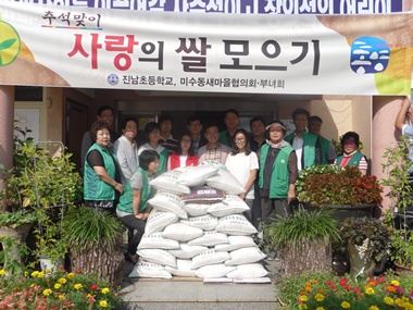 Áø³²ÃʵîÇб³(±³Àå ±èÀμö) ÇлýȸÀå Á¶³ª¿¬ µî Àü±³»ý 1,082¸íÀÇ ÀÛÀº ¼ÕÀ¸·Î ÇÑ ¿òÅ­¾¿ ¸ðÀº ½Ò 750§¸À» Áö³­ 9¿ù 11ÀÏ Çб³ ±³Á¤¿¡¼­ ¹Ì¼öµ¿ »õ¸¶À»´Üü(ÇùÀÇȸÀå ÀӺαÙ, ºÎ³àȸÀå ¹®¿µ¹Ì)¿¡ Àü´Þ, ¿ì¸®¹ÎÁ· °íÀ¯ÀÇ ÃÖ´ë¸íÀýÀÎ Ãß¼®À» ¸î ÀÏ ¾ÕµÎ°í ¿ì¸® ÁÖÀ§¸¦ ÈÆÈÆÇÏ°Ô Çϰí ÀÖ´Ù.