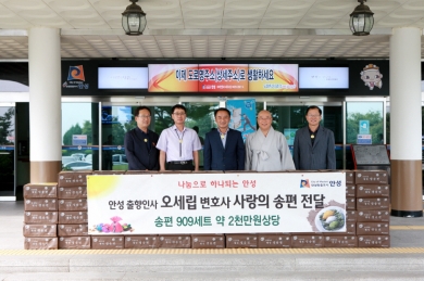 °°Àº ³¯ ¾È¼º ¾ç¼º¸é Ãâ½Å ¿À¼¼¸³ º¯È£»ç´Â °ü³» ¾î·Á¿î Àú¼Òµæ°¡Á¤ Áö¿øÀ» À§ÇÑ ÀÌ¿ôµ½±â »ç¶ûÀÇ ¼ÛÆí 909¼¼Æ®(2000¸¸¿ø »ó´ç)¸¦ ±âŹÇß´Ù.