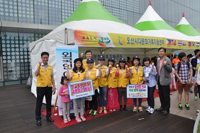 ¿À»ê½ºÆ÷Ã÷¼¾ÅÍ ±¤Àå ÀÏ´ë¿¡´Â ´Ù¹®È­À½½Ä ¹®È­ ÃàÁ¦ Çà»ç·Î ÀÎÇØ ¸¹Àº ¿Ü±¹ÀεéÀÌ Âü¿©ÇÏ¿© À̵éÀ» ´ë»óÀ¸·Î ±âÃÊÁú¼­ Áؼö ¹× ¹üÁË¿¹¹æ È«º¸È°µ¿À» ÆîÃÆ´Ù.