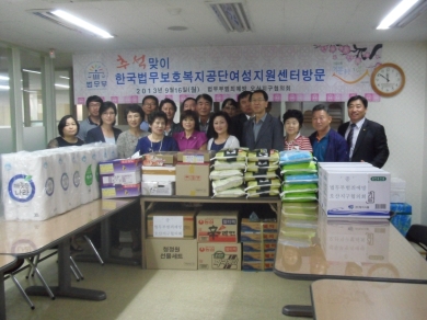 ¿À»ê½Ã(½ÃÀå °û»ó¿í) ¹ý¹«ºÎ¹üÁË¿¹¹æÀ§¿ø ¿À»êÁö±¸ÇùÀÇȸ(ȸÀå °øÈï½Ä)´Â Áö³ 16ÀÏ ¹ÎÁ·ÀÇ ¸íÀýÀÎ Ãß¼®À» ¸Â¾Æ ¹ý¹«º¸È£º¹Áö°ø´Ü ¿©¼ºÁö¿ø¼¾Å͸¦ ¹æ¹®ÇØ À§¹®Ç°À» Àü´ÞÇß´Ù.