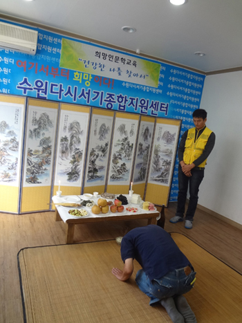 ¼ö¿ø´Ù½Ã¼±â ³ë¼÷ÀÎÁ¾ÇÕÁö¿ø¼¾ÅÍ´Â Ãß¼®¸íÀýÀ» ¸ÂÀÌÇÏ¿© 17ÀÏ ¿ÀÀü 10½Ã ¼¾Åͳ»¿¡ Â÷·Ê»óÀ» ÁغñÇÏ°í »çȸÀû ¼Ò¿Ü°èÃþÀÎ ³ë¼÷Àΰú ÇÔ²² Â÷·Ê¸¦ Áö³»¸ç ÈÆÈÆÇÑ Ãß¼®ÀÌ µÇ±â¸¦ ±â¿øÇß´Ù.