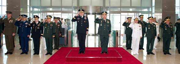 Á¤½ÂÁ¶ ÇÕÂüÀÇÀåÀº 24ÀÏ ¿ÀÀü ÇÕÂüû»ç¿¡¼ Á¦ÀÓ½º ½á¸Õ(James D. Thurman, À°±º ´ëÀå) ÇÑ¹Ì ¿¬ÇÕ»ç·É°ü ȯ¼Û ÀÇÀåÇà»ç¸¦ ÇßÀ¸¸ç, Á¤ ÀÇÀåÀº "ÀçÀÓ ±â°£('11.7.14~ÇöÀç) µ¿¾È ±»°ÇÇÑ Çѹ̵¿¸ÍÀ» ¹ÙÅÁÀ¸·Î Çѹݵµ ¾Èº¸¿¡ Å©°Ô ±â¿©ÇÑ ¹Ù¿¡ ´ëÇØ °æÀǸ¦ Ç¥ÇÏ°í ¹«¿îÀ» ¹Ù¶õ´Ù"°í ¸»Çß´Ù.