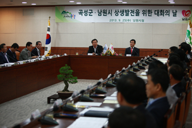¡¸°î¼º±º-³²¿ø½Ã »ó»ý¹ßÀü ´ëÈÀÇ ³¯¡¹ Çà»ç°¡ 25ÀÏ ³²¿ø½Ãû¿¡¼ ¾ç ÀÚÄ¡´Üü °£ºÎ°ø¹«¿øµéÀÌ ¸ðÀÎ °¡¿îµ¥ ¿·È´Ù.