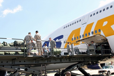 Á¦4-6°ø°ÝÁ¤ÂûÇ×°ø´ë´ë ¼Ò¼Ó À庴µéÀÌ 9¿ù 25ÀÏ ´ëÇѹα¹ ±º»ê°ø±º±âÁö¿¡ µµÂøÇÑ ÈÄ Ç×°ø±â¿¡¼­ À庴µéÀÇ ÁüÀ» ³»¸®°í ÀÖ´Ù.