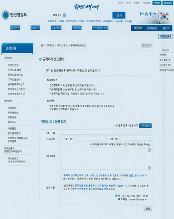 ½Å°í´Â ¾ÈÀüÇàÁ¤ºÎ ȨÆäÀÌÁö(http://www.mospa.go.kr)¸¦ ÅëÇØ ÇÒ ¼ö ÀÖ´Ù.