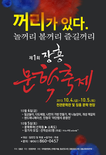 ÀåÈﱺ õ°ü¹®Çаü¿¡¼­ 'Á¦1ȸ ÀåÈï¹®ÇÐÃàÁ¦'¸¦ 10¿ù 4ÀÏ¿¡¼­ 5ÀϱîÁö ¿¬´Ù.