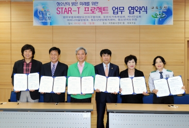 °æ±â ¿À»ê½Ã(°û»ó¿í ½ÃÀå)¿Í ¹ý¹«ºÎ¹üÁË¿¹¹æÀ§¿øÈ¸ ¿À»êÁö±¸ÇùÀÇȸ(ȸÀå °øÈï½Ä) µî 5°³ ´Üü°¡ Áö³­ 7ÀÏ ¿ÀÈÄ ÀÚ¿øºÀ»ç¼¾ÅÍ¿¡¼­ Çб³Æø·Â ¿¹¹æÀ» À§ÇÑ ½ºÅ¸Æ®(STAR-T) ÇÁ·ÎÁ§Æ® ¾÷¹«Çù·Â Çù¾à½ÄÀ» °¡Á³´Ù.