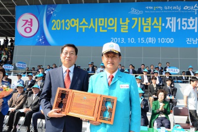 ¼ÀçÈ« Á¶¼±´ë ÃÑÀåÀÌ Áö³ 15ÀÏ ¿ÀÀü 10½Ã Áø³²°æ±âÀå¿¡¼ ¿¸° ¡®2013 ¿©¼ö½Ã¹ÎÀÇ ³¯¡¯ ±â³ä½Ä¿¡¼ ±èÃæ¼® ¿©¼ö½ÃÀåÀ¸·ÎºÎÅÍ ¡®ÀÚ¶û½º·± ¿©¼öÀΡ¯ »óÀ» ¹Þ¾Ò´Ù.