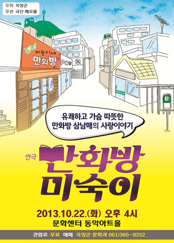 °î¼º±º ¹®È¼¾ÅÍ µ¿¾Ç¾ÆÆ®È¦¿¡¼ ¿À´Â 22ÀÏ(È) ¿ÀÈÄ 4½Ã¿¡ ¿¬±Ø ¡®¸¸È¹æ ¹Ì¼÷ÀÌ¡¯¸¦ °³ÃÖÇÑ´Ù.
