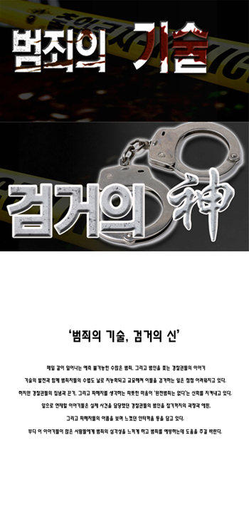 À¥Å÷Àº °æ±âµµ³»¿¡¼­ ¹ß»ýÇÑ Áß¿ä ¹üÁË »ç°ÇÀÇ À¯Çü°ú °Ë°Å°úÁ¤À» ½ºÅ丮ÅÚ¸µ Çü½ÄÀ¸·Î ±×¸®°í ÀÖÀ¸¸ç, ¸¶Áö¸·¿¡ »ç°Ç ´ã´ç °æÂû°üÀÌ ±¹¹Îµé¿¡°Ô ¹üÁË¿¹¹æ¹ýÀ» ¼Ò°³ÇÑ´Ù.