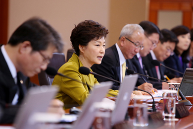 ¹Ú±ÙÇý ´ëÅë·ÉÀÌ 22ÀÏ Ã»¿Í´ë¿¡¼­ ¿­¸° ±¹¹«È¸ÀÇ¿¡¼­ ¸ðµÎ¹ß¾ðÀ» Çϰí ÀÖ´Ù. (»çÁø=û¿Í´ë)