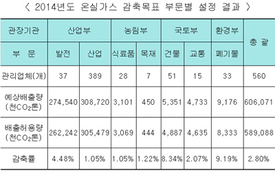 ¿Â½Ç°¡½º¡¤¿¡³ÊÁö ¸ñÇ¥ °ü¸®¾÷ü 560°³´Â ³»³â ¿Â½Ç°¡½º ¿¹»ó¹èÃâ·®ÀÇ 2.8%¸¦ °¨ÃàÇØ¾ß ÇÑ´Ù.