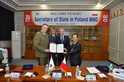 Çѱ¹ ±¹¹æ´ëÇб³(¹Ú»ïµæ ÃÑÀå/À°±ºÁßÀå) ¹ÎÁø ºÎÃÑÀå°ú Æú¶õµå ±¹¹æ´ëÇб³ º¸±×½½¶óÇÁ ÆÄ¼½ ÃÑÀå(À°±º¼ÒÀå)ÀÌ 23ÀÏ ±¹¹æ´ë ¼ÒȸÀǽǿ¡¼ ¾çÇØ°¢¼(MOU)¸¦ ü°áÇß´Ù.