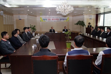Áö³ 28ÀÏ Å뿵¿ìü±¹ ´ëȸÀǽǿ¡¼ Å뿵½ÃÀå, Å뿵¿ìü±¹Àå µî °ü°èÀÚ 20¿©¸íÀÌ Âü¼®ÇÑ °¡¿îµ¥ '¼Ò¿Ü°èÃþ ¸ÂÃãÇü ¹Î¿ø・º¹Áö¼ºñ½º' Á¦°øÀ» À§ÇÑ ¾÷¹« Çù¾à(MOU)À» ü°áÇß´Ù.