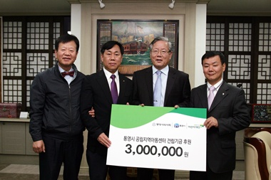 Å뿵½Ã¾à»çȸ(ȸÀå Çã´öÈ¿)´Â Áö³ 28ÀÏ Å뿵½Ã(½ÃÀå ±èµ¿Áø)¸¦ ¹æ¹®ÇØ ÃÊ·Ï¿ì»ê ¾î¸°ÀÌÀç´Ü °æ³²¼ºÎÁö¿ªº»ºÎ¿¡ Å뿵½Ã°ø¸³Áö¿ª¾Æµ¿¼¾ÅÍ °Ç¸³ ÈÄ¿ø±Ý 300¸¸¿øÀ» Àü´ÞÇß´Ù.