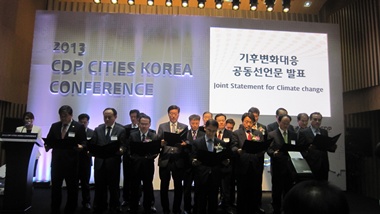 2013 CDP Cities Korea ÄÁÆÛ·±½º´Â '±âÈĺ¯È­ ´ëÀÀ°ú µµ½Ã°æÀï·Â'À̶ó´Â ÁÖÁ¦·Î ±âÈĺ¯È­ ´ëÀÀ ¸ð¹üÁöÀÚüÀÇ È°µ¿À» Àå·ÁÇÏ°í µµ½Ã °æÀï·Â Á¦°í¸¦ À§ÇÏ¿© °³ÃֵǾúÀ¸¸ç, Àü±¹ ¿ì¼öÁöÀÚü 20°³ ½Ã±ºÀÌ ÃÊûµÇ¾î ±âÈÄ º¯È­´ëÀÀ ¼¼°èÀû È帧, ±¹³»¿Ü »ç·Ê¹ßÇ¥, º¸°í¼­ ¹ßÇ¥¿¡ ÀÌ¾î ±âÈĺ¯È­ °øµ¿¼±¾ð¹® ¹ßÇ¥¸¦ ¼øÀ¸·Î ÁøÇàµÆ´Ù.