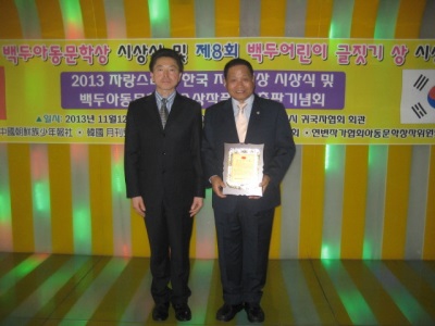 ¾Æµ¿¹®Çа¡ ±èö¼ö ¹Ú»ç´Â Áß±¹ Á¶¼±Á·¼Ò³âº¸»ç°¡ Á¦Á¤ÇÑ '2013 ÀÚ¶û½º·¯¿î Çѱ¹Àλó' ¼ö»óÀÚ·Î °áÁ¤µÇ¾î Áö³ 12ÀÏ ¿ÀÀü 10½Ã30ºÐ¿¡ Áß±¹ ¿¬±æ½Ã ±Í±¹ÀÚÇùȸ ȸ°ü ȸÀǽǿ¡¼ ½Ã»ó½ÄÀ» °¡Á³´Ù.