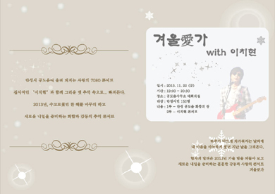 À̹ø¿¡ ¿¸®´Â À½¾Çȸ´Â 7080¼¼´ë¸¦ °Ü³ÉÇØ 'Áý½Ã¿©ÀÎ'À» ºÒ·¯ Àα⸦ ¸ð¾Ò´ø °¡¼ö ÀÌÄ¡ÇöÀÇ ÄܼƮ Çü½ÄÀ¸·Î ÁøÇàµÇ¸ç, °øµµÀ½¾Ç»ç¶ûµ¿È£È¸°¡ Âü¿©ÇÑ´Ù.