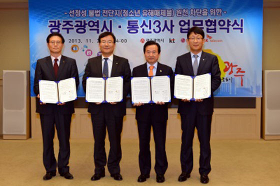 °¿îÅ ±¤ÁÖ±¤¿ª½ÃÀåÀº 21ÀÏ ¿ÀÈÄ 2½Ã ½Ãû 3Ãþ ºñÁî´Ï½º·ë¿¡¼ ¼±Á¤¼º ºÒ¹ý Àü´ÜÁö ¿øÃµ Â÷´ÜÀ» À§ÇØ Åë½Å 3»ç¿Í ¡®ºÒ¹ý Àü´ÜÁö ±âÀç ÀüȹøÈ£ ÀÌ¿ëÁ¤Áö ¾÷¹«Çù¾à¡¯À» ü°áÇß´Ù.