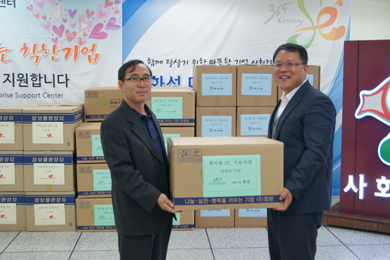 ¹°Ç°À» Àü´Þ¹ÞÀº È­¼º½ÃÁö¿ª¾Æµ¿¼¾ÅÍ¿¬ÇÕȸ ÀÌÇà¿ë ȸÀåµµ ¡°´Ü¼øÈ÷ ±âºÎ¹°Ç°À» ¹Þ´Â ÀÔÀåÀÌ ¾Æ´Ï¶ó »çȸÀû°æÁ¦ ¹°Ç° ±¸ÀÔ°ú È«º¸·Î ¼­·Î »ó»ýÇÏ´Â ±âȸ·Î »ï°Ú´Ù¡±°í ¸»Çß´Ù.