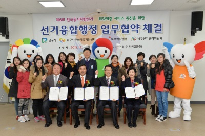 ³²±¸¼±°Å°ü¸®À§¿øÈ¸´Â Á¦6ȸ Àü±¹µ¿½ÃÁö¹æ¼±°Å¿¡ ´ëºñÇÏ¿© ¼±°Å Ãë¾à°èÃþÀÎ ´Ù¹®È­°¡Á·, ºÏÇÑÀÌÅ»ÁÖ¹ÎÀÇ ÂüÁ¤±Ç º¸Àå°ú ¼±°Å¼­ºñ½º Á¦°í¸¦ À§ÇÑ ¾÷¹«Çù¾à½ÄÀ» Áö³­ 6ÀÏ 11½Ã ³²±¸Ã»¿¡¼­ °¡Á³´Ù.