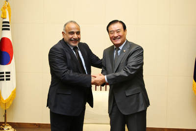 °Ã¢Èñ ±¹È¸ÀÇÀåÀº 17ÀÏ ¿ÀÀü ÀÇÀåÁ¢°ß½Ç¿¡¼ ÇÑ-À̶óÅ©¿ìÈ£Àç´Ü ÃÊûÀ¸·Î ¹æÇÑ ÁßÀÎ ¾Æµô ¾ÐµÑ ¸¶Èåµð(Addil Abdul MAHDI) Àü À̶óÅ© ºÎÅë·É ÀÏÇàÀ» Á¢°ßÇÏ°í ¿ì¸® ±â¾÷ÀÇ À̶óÅ© ½ÃÀå ÁøÃâ Áö¿ø µî ¾ç±¹ °£ ¿ìÈ£Çù·Â°ü°è ÁõÁø ¹× °æÁ¦Çù·Â °È¹æ¾È ¿¡ ´ëÇØ ÀǰßÀ» ³ª´³´Ù.