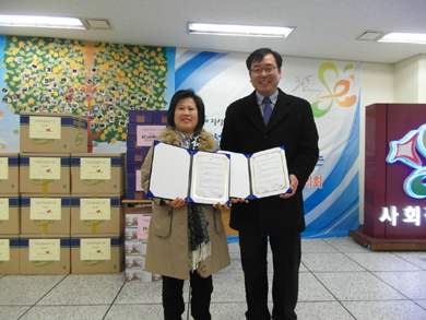 À̹ø 2Â÷ »çȸ°øÇå ¹°Ç°Àü´Þ½ÄÀ» ÅëÇØ »çȸÀû±â¾÷ ¢ßH&S µÎ¸®¹ÝÀÇ Å©¸®½º¸¶½º ÄÉÀÌÅ© 30°³, »çȸÀû±â¾÷ ÇູÇÑÀÏÅÍÀÇ Á¡º¸·Ñ 10¹Ú½º(160EA), ¿¹ºñ»çȸÀû±â¾÷ (ÁÖ)ÈÞ¸ÕÇ÷¯½ºÀÇ 100¸®ÅÍ ¾²·¹±âºÀÅõ 500¸Å¿Í ÀººûÁö¿ª¾Æµ¿¼¾ÅÍ Á¤±â¼Òµ¶ ¿ù 1ȸ ¼ºñ½º Á¦°ø, ¸¶À»±â¾÷ Ç®Çâ±â¿µ³óÁ¶ÇÕ¹ýÀÎÀÇ ÆûŬ·»Àú 30°³°¡ Áö¿ª¾Æµ¿¼¾ÅÍ·Î Àü´ÞµÇ¾ú´Ù.