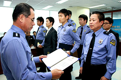 ÀÌ ¹Û¿¡µµ Á¤º¸°ú ÃÖ¿ë¼® °æÀ§, ¼ö»ç°ú ±èÀç¹Î °æ»ç µî 6¸íÀÌ ÇØ»ó Ä¡¾È¿¡ ±â¿©ÇÑ °ø·Î·Î ÆòÅÃÇØ¾ç°æÂû¼Àå ǥâÀ» ¼ö¿©¹Þ¾Ò´Ù.