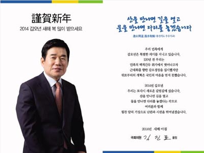 ¹ÎÁÖ´ç ±èÁøÇ¥ ÀÇ¿øÀÌ 2014³â »õÇØ ȵηΠ¡°»êÀ» ¸¸³ª¸é ±æÀ» ¿°í ¹°À» ¸¸³ª¸é ´Ù¸®¸¦ ³õ°Ú´Ù¡±´Â ¶æÀÇ ºÀ»ê°³µµ ¿ì¼ö°¡±³(ÜñߣËÒÔ³ éçâ©ÊÎé)¸¦ ÀοëÇÑ À̸ÞÀÏ ¿¬ÇÏÀåÀ» º¸³» ´«±æÀ» ²ø°í ÀÖ´Ù.