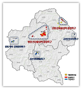 µ¿°è¿Ã¸²ÇÈÆ¯±¸´Â ÀÔÁö Ư¼º°ú º¸À¯ ÀÚ¿ø, ¿Ã¸²ÇÈ´ëȸ ½ÃÀÇ ±â´É µî¿¡ µû¶ó Å©°Ô 5°³ Ư±¸, 11°³ ´ÜÀ§°³¹ß »ç¾÷Áö±¸·Î ±¸ºÐµÈ´Ù. Ư±¸ °³¹ßÀº °ø°ø°ú ¹Î°£ °³¹ß ¹æ½ÄÀ» º´ÇàÇÏ¿© ÀÌ·ç¾îÁú ¿¹Á¤ÀÌ´Ù.