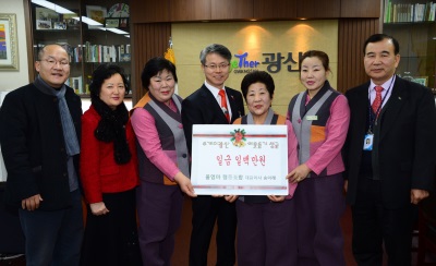 ÀÌ¿ôµ½±â ¼º±Ý 100¸¸¿øÀ» 13ÀÏ ±¤ÁÖ ±¤»ê±¸ ¡®Åõ°Ô´õ±¤»ê ³ª´®¹®È­Àç´Ü¡¯¿¡ ±âŹÇÑ ¡®¿ï¾ö¸¶ Çùµ¿Á¶ÇÕ¡¯ ¼ÛÀÌ·Ê ´ëÇ¥ÀÌ»ç(¿©¡¤68)ÀÇ ¸»ÀÌ´Ù.