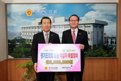 °æ±âµµÀÇȸ ±è°æÈ£ ÀÇÀåÀº 13ÀÏ Áý¹«½Ç¿¡¼­ ´ëÇÑÀû½ÊÀÚ»ç °æ±âÁö»ç ±èÈÆµ¿ ȸÀå¿¡°Ô Àû½ÊÀÚ Æ¯º°È¸ºñ¸¦ Àü´ÞÇß´Ù.