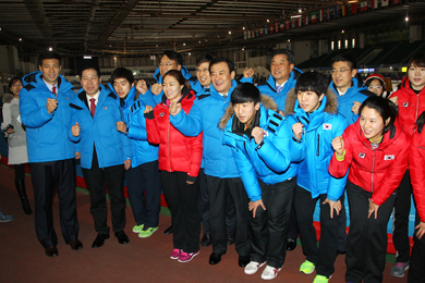 °­Ã¢Èñ ±¹È¸ÀÇÀåÀº 15ÀÏ ¿ÀÈÄ ¡¸2014 ·¯½Ã¾Æ ¼ÒÄ¡ µ¿°è¿Ã¸²ÇÈ¡¹Âü°¡ ¼±¼ö´Ü °Ý·ÁÂ÷ Ÿª¼±¼öÃÌÀ» ¹æ¹®, ÈÆ·ÃÀåÀ» µÑ·¯º¸¸ç ¼±¼öµéÀ» °Ý·ÁÇß´Ù.