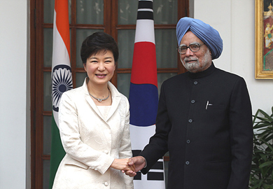 Àεµ¸¦ ±¹ºó¹æ¹® ÁßÀÎ ¹Ú±ÙÇý ´ëÅë·ÉÀº 16ÀÏ(ÇöÁö½Ã°£) ¸¸¸ðÇÑ ½Ì Àεµ ÃѸ®¿Í Á¤»óȸ´ãÀ» °®°í ÇÑ-Àεµ ¾çÀÚ °ü°è °È ¹æ¾È°ú Áö¿ª ¹× ±¹Á¦¹®Á¦¿¡ ½ÉµµÀÖ°Ô ÀǰßÀ» ±³È¯ÇÑ µÚ ¡®ÇÑ-Àεµ Àü·«Àû µ¿¹ÝÀÚ °ü°è È®´ë¸¦ À§ÇÑ °øµ¿ ¼º¸í¡¯À» äÅÃÇß´Ù.
