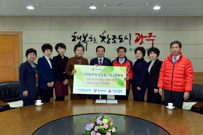 ¢ß±×¸°¾Ë·Î¿¡°¡ Àü´ÞÇÑ °Ç°­±â´É½Äǰ 304¼¼Æ®¿Í ¼º±Ý 2000¸¸¿øÀº ±¤ÁÖ»çȸº¹Áö°øµ¿¸ð±Ýȸ »ç¶ûÀÇ¿­¸Å¸¦ ÅëÇØ ±¤ÁÖÁö¿ª »çȸº¹Áö½Ã¼³°ú ±Ù·ÎÀÚ´ë±â¼Ò¿¡ ÄŶó¸é°ú Ãë¾à°èÃþ ¼³ ¸íÀý½ÄǰÀ¸·Î Áö¿øµÈ´Ù.