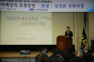 ÁغñµÈ °æÁ¦µµÁö»ç¸¦ Ç¥¹æÇÏ´Â ±èÁøÇ¥ ÀÇ¿øÀº 27ÀÏ °æ±âµµÀÇȸ¿¡¼ ¿¸° ¡®2014³â °æ±âµµ»çȸº¹Áö Á¤Ã¥Åä·Ðȸ¡¯¿¡ Âü¼®ÇÏ¿© ¡®¹Ù¶÷Á÷ÇÑ º¹ÁöÁ¤Ã¥°ú Áö¹æÁ¤ºÎÀÇ ¿ªÇÒ¡¯À̶õ °¿¬¿¡¼ ¡°»çȸº¹Áö»ç°¡ »ì¾Æ¾ß °æ±âµµ º¹Áö°¡ »ì ¼ö ÀÖ´Ù¡±°í °Á¶Çß´Ù.