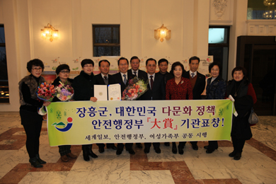 ÀåÈﱺÀº ´Ù¹®È­°¡Á¤ ÀÌÁÖ ¿©¼º°ú ±× °¡Á·¿¡ ´ëÇÑ Áö¿ª»çȸ Á¤Âø Áö¿ø ¹× °¡Á· ³» ÅëÇÕ Áö¿øÀ» ÅëÇØ ´Ù¹®È­ °¡Á¤ÀÇ ¾ÈÁ¤ÀûÀÎ »ýȰÀ» µµ¸ðÇϴµ¥ ´Ù¾çÇÑ ½ÃÃ¥À» ¹ß±¼ ÃßÁøÇÏ¿© ±×µéÀÇ ÀÚÁ¸°¨°ú Çѱ¹»çȸ ÀûÀÀ°ú Áö¿ª»çȸ Ȱµ¿¿¡ ´ëÇÑ ¸¸Á·µµ Çâ»ó¿¡ Å©°Ô ±â¿©ÇÑ °øÀ» ÀÎÁ¤¹Þ¾Æ ¾ÈÀüÇàÁ¤ºÎ·ÎºÎÅÍ ¡®´ë»ó¡¯À» ¼ö¿© ¹Þ°í 500¸¸¿øÀÇ »ó±ÝÀ» ¹Þ¾Ò´Ù.